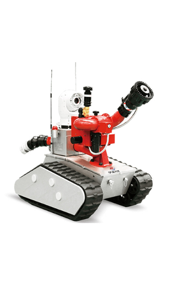 消防滅火偵察機器人采用履帶式機器人平臺,由機器人本體、消防水炮、監控云臺及控制箱四部分構成。消防滅火偵察機器人可代替消防救援人員進入易燃易爆、有毒、缺氧、濃煙等危險災害事故現場進行探測、搜救、滅火。