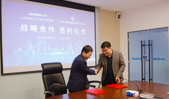 2021年4月22日,山東華瑞智能科技有限公司徐振峰總經理與山東新松工業軟件研究院股份有限公司鄒風山院長正式簽署戰略合作協作框架協議。